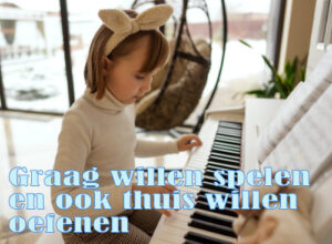 De meeste leerlingen lukt het om zelf te zorgen dat ze oefenen. Meestal omdat musiceren hun hobby is en ze het heel leuk vinden, maar sommige jonge leerlingen hebben het nodig dat hun ouders hen daar een beetje bij helpen, bijvoorbeeld door belangstelling te tonen voor de muziek. Iets oudere leerlingen kunnen baat hebben bij een reminder in hun telefoon. Voor sommige leerlingen werkt het om juist in de kamer te spelen waar een ouder is, voor anderen is het juist fijn als het instrument in een kamer staat waar niemand hen stoort. Dat moet je samen uitproberen.